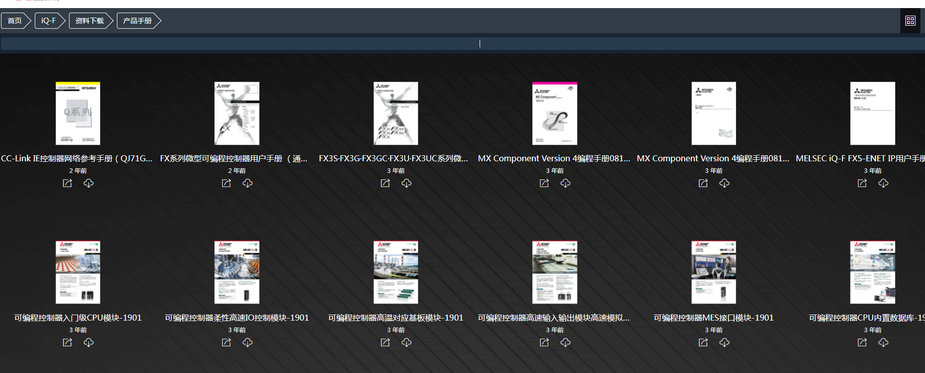 例如我要找IQ-F的PLC的資料手冊(cè)。直接點(diǎn)擊進(jìn)去。(可以左右滑動(dòng),需要找什么資料就進(jìn)去)