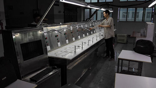 該咖啡壺檢測設備是深圳某大型咖啡壺生產商用來檢測成品咖啡壺是否合格的專用設備。該設備的主要原理是:通過檢測咖啡壺煮水過程中的電流、功率、預熱時間、出水溫度、煮水時間、杯內溫度等指標來判斷咖啡壺是否合格。該套設備一共14個工位,每個成品咖啡壺的檢測時間為80S-100S,14個工位可同時工作,工作效率高,可靠性好,是行業公認的檢測咖啡壺指定設備。
