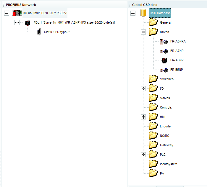 每個Profibus總線網(wǎng)絡(luò)模塊在組態(tài)時,都需要對應(yīng)的GSD文件。而一些新模塊的GSD文件在組態(tài)軟件GX configurator-DP中并沒有,需要人工在三菱官網(wǎng)上下載并添加進去。之所以會出現(xiàn)找不到型號的問題,就是因為沒有在軟件中增添相應(yīng)GSD文件。FR-A7NP和FR-A8NP唯一使用區(qū)別就是安裝的GSD文件不一樣。而變頻器參數(shù),PLC程序,以及軟件組態(tài)都一樣。(具體使用方法可撥打我公司技術(shù)熱線0755-88352540咨詢。)