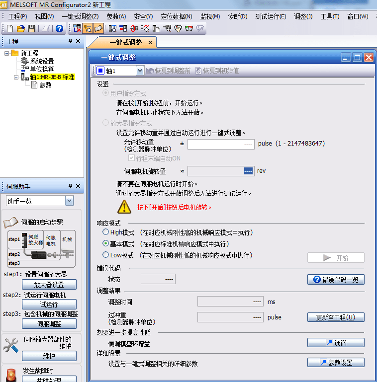 7) 伺服新增<一鍵式調整>功能,解決現場伺服增益調整難問題,三種模式,一鍵啟動,自動調整到需要效果;對機械共振消除,插補圓弧鋸齒消除,到位擺動問題輕易解決