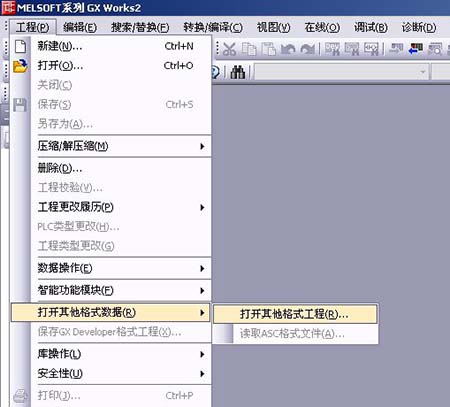 第 1 步:在 GX Works2 中,點工程、打開其他格式數據、打開其他格式工程;