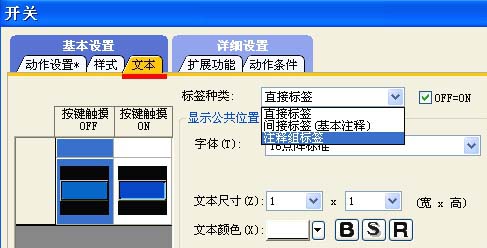 我們在窗口畫面中加入兩個開關(guān)做語言切換和一個返回開關(guān)。開關(guān)的建立和第一個開關(guān)建立相似,標(biāo)簽種類都為注釋組標(biāo)簽,動作都設(shè)為點動。軟元件名分別為 M10、M11、M12。文本注釋 NO 的固定值分別為 2、3、4。