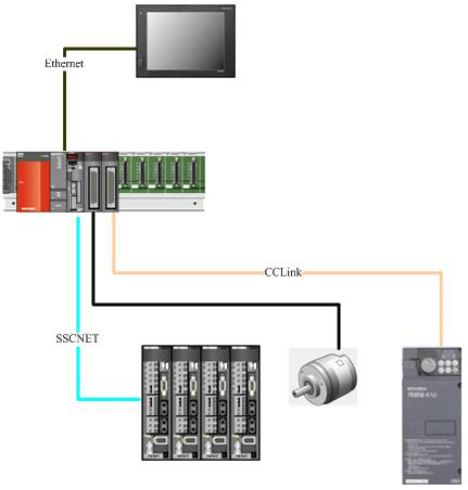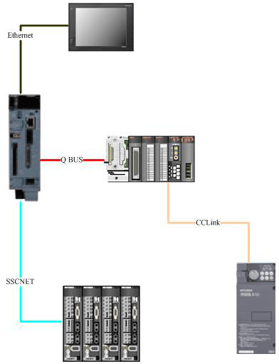 該配置首先需要通過以太網(wǎng)將視覺系統(tǒng)與三菱PLC相連,以便傳輸位置數(shù)據(jù)。同時需要一個提供插補功能的運動控制器將機械抓取裝置以最快的速度抓取物品,以提高生產(chǎn)效率。