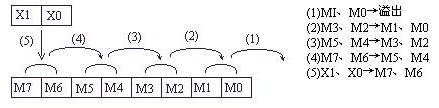 SFTLP M0 M20 K16 K4意思是:當(dāng)條件成立時,將M3M2M1M0左移到M35M34M33M32M31M30M29M28M27M26M25M24M23M22M21M20中去,每次移4位,高位溢出。