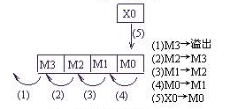 SFTRP M0 M20 K16 K4 意思是:當(dāng)條件成立時,將M3M2M1M0右移到M35M34M33M32M31M30M29M28M27M26M25M24M23M22M21M20中去,每次移4位,低位溢出。