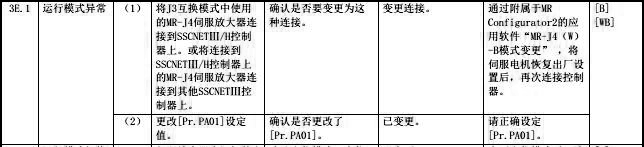首先,可以確定的是,三菱伺服電機(jī)MR-J4系列報(bào)警“3E.1”是運(yùn)行模式異常的故障,與三菱伺服電機(jī)本身并無半毛錢的關(guān)系,具體三菱伺服報(bào)警說明如下圖所示: