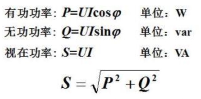 視在功率(S):某種意義上來說,是有功功率P和無功功率Q之和;對于電源來說,視在功率是由有功和無功功率混合而成,比如變壓器提供的功率既包含有功也包含無功功率,所以變壓器的容量單位就是視在功率,單位為千伏安(KVa)。