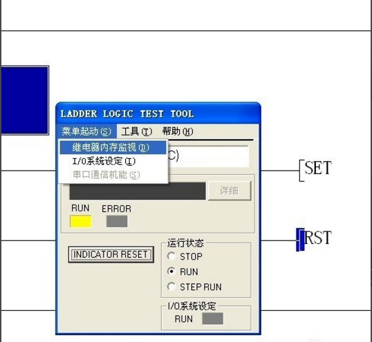 六、點(diǎn)擊測(cè)試對(duì)話框的“菜單啟動(dòng)”—繼電器內(nèi)存監(jiān)視。