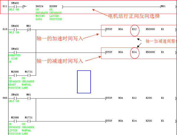 10.伺服電機(jī)加速時(shí)間和減速時(shí)間的程序設(shè)定方法: