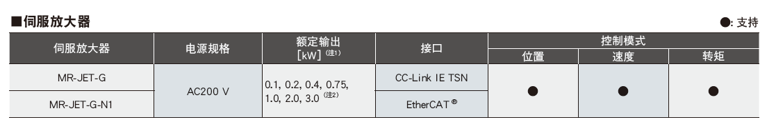三菱伺服電機MR-JET-G-N1型號產品介紹: